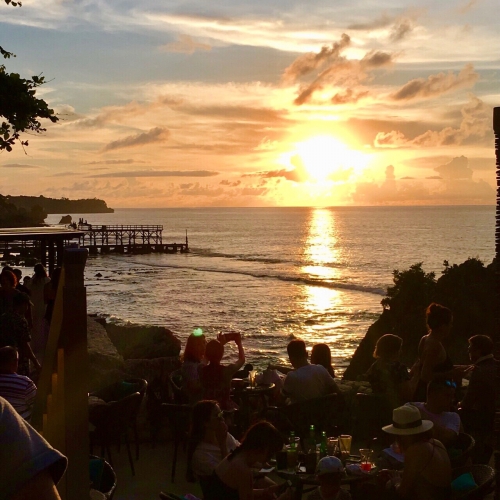 バリ島で人気の絶景バーで、「世界のベストホテルバートップ30」をはじめ数々の賞を受賞しています。「アヤナ リゾート&スパ バリ」にあり、宿泊していなくても利用できます。ロックバーが建つのは、目の前に青い海が広がる海抜14メートルの断崖絶壁。ガラス張りの専用のケーブルカーでアクセスします。サンセットの時間がとくに人気で混み合いますが、一見の価値あり!最高の景色を楽しむことができます。
