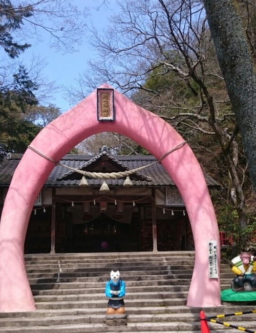 珍スポットとして有名になった境内の「桃の鳥居」などは、コンクリート造形作家浅野瑞雲によるもので、昭和20年代に神社を訪れる子どもたちが喜ぶようにと設置されたのだとか。ちなみに桃太郎神社は、子供の守り神としても知られています。