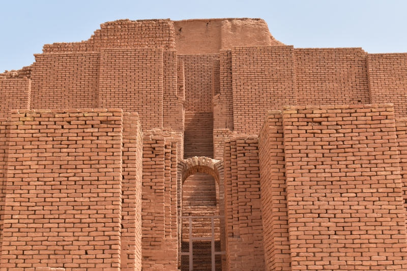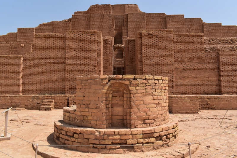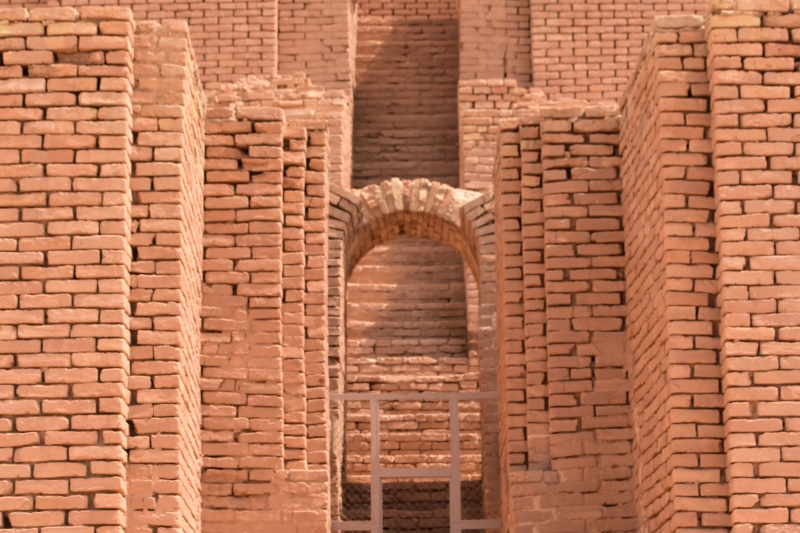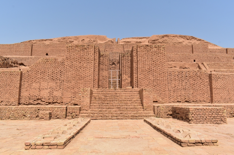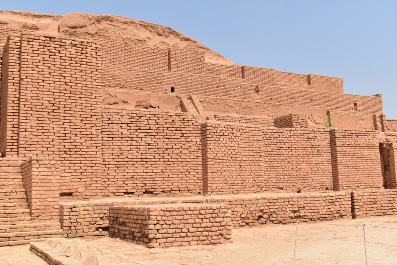 ジッグラトは、都市の守護神に捧げられた神殿として建設されました。最上部には神殿が設けられ、司祭や王が定期的に参拝し、豊穣や平和を祈願しました。神殿は「神の住まう場所」とされ、神々との交信の場として機能しました。チョガ・ザンビールは四方向から上階へ上ることができますが、こちらの面は特に7階(頂上)に祀られたインシュシナク神の祭壇まで直接行ける階段です。筆者はそれを知らずにここへ来た時、他の場所にはない恐怖めいたものを感じました。