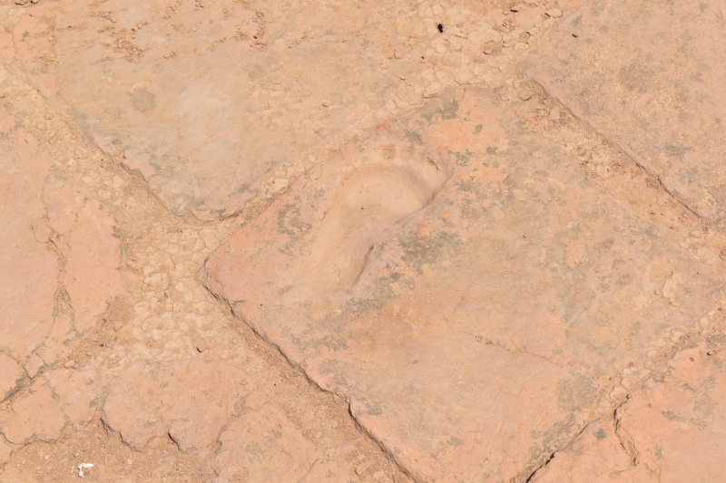 建設中に誤って踏んでしまったのか、古代人の足跡の遺る床もあります。