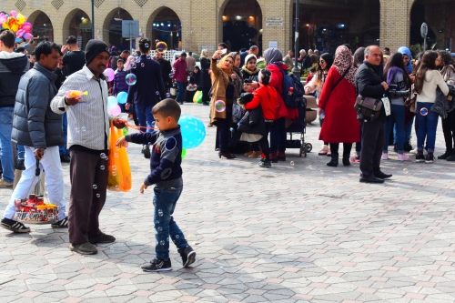城塞の南、クロックタワーの向かい、アルビールの中心に位置するバザールでは、ラグ、ゴールドをはじめ、ヨーグルトやチーズ、雑貨など、食料品から日用品まで様々な物が売られています。