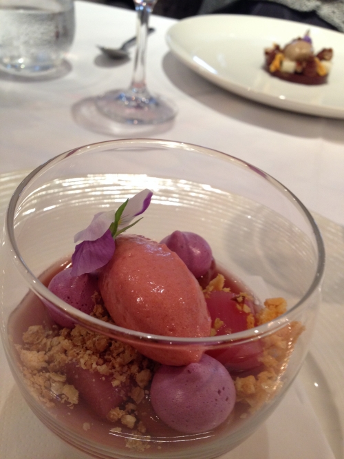 コースを注文すれば、前菜の前にアミューズ(一口大の前菜)と、デザートの後にプティフール(一口サイズのお菓子)がついてきます。