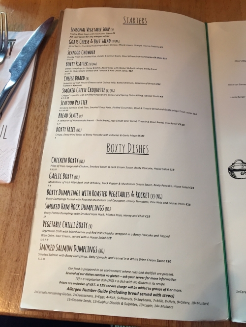 様々なタイプのボクスティが食べられるだけでなく、フィッシュ&チップスやアイリッシュシチューなどの定番アイルランド料理も食べることができます。