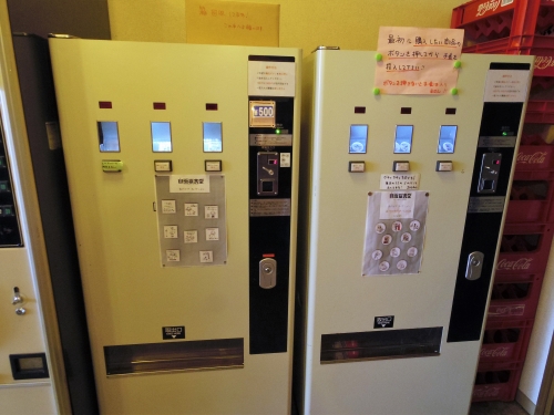それでは、食堂内に立ち並ぶ懐かし自販機とメニューをご紹介しましょう。