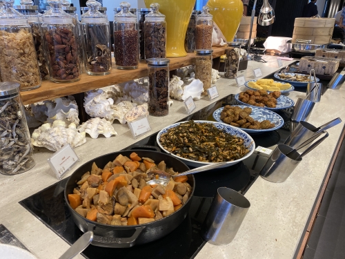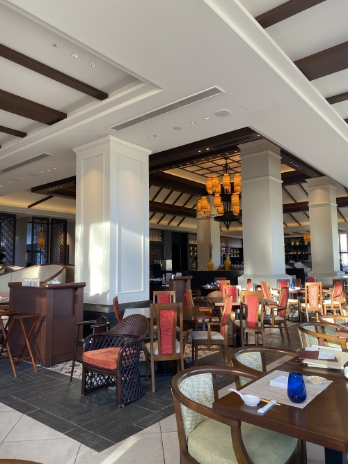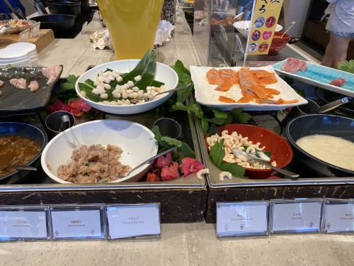 東南アジアや琉球料理が頂ける琉球新天地は、朝食は和食、中華が中心。新鮮なお刺身や海ぶどうなどがビュッフェで頂けるんです。夕食はアラカルトで、海老蒸し餃子や地元のノコギリガザミを使用したシンガポール風のチリクラブがおすすめ。