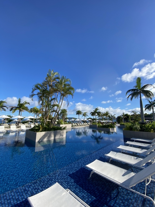 いつ写真を撮っても映えるプールは、使い心地も抜群なんです。プールにはサンベッド、パラソルがあり宿泊者は無料。プールや海で使用するタオルも無料でビーチステーションで借りる事が出来ます。プール使用時には、チェックイン時にもらうゴムのブレスレットを必ず付けましょう。このブレスレットが宿泊者の証明になります。