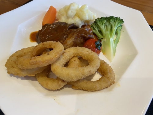 朝食、昼食、夕食は2階のレストランで頂きます。全てビュッフェで、和、洋、中、エスニックなど世界の料理が毎食楽しめるんです。また、焼きたてのパンや種類豊富なデザートまで、毎日3食ともメニューが違い、長く滞在しても飽きず、どの年齢層の方も満足出来る食事になっています。