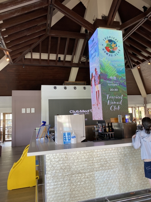 プールサイドエリアには、クラブメッドのシャツや日焼け止めが購入出来る売店(休憩時間あり)、プールサイドバー、ビーチエリアには、アクティビティーセンター、敷地内にはテニスコート、空中ブランコ、アーチェリー、サッカーコートなどの施設があるんです。