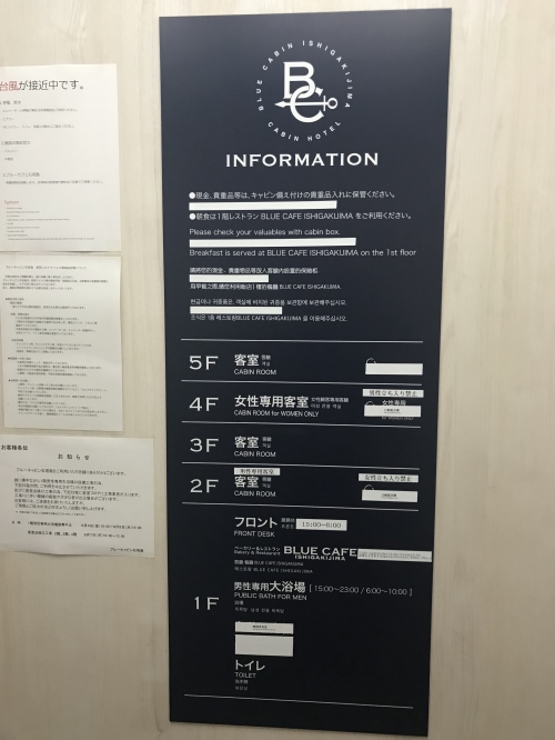 カプセルホテルで気になるのが、セキュリティー。ブルーキャビン石垣島は、男女別フロアになっており、フロアの入り口には2重のロックがかかっています。その為、一度フロアに入ってしまえば、異性とすれ違う事なく過ごせます。お風呂やトイレも各フロアに用意されているので安心です。
