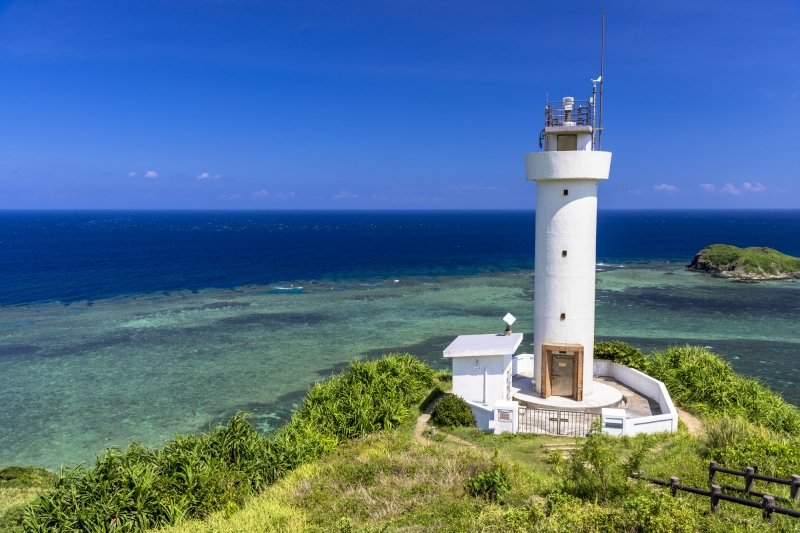 市街地から車で1時間、空港からは車で40分ほどの場所にある、ドライブで訪れるのにもおすすめな絶景スポット。石垣島の最北端に位置する「平久保崎」に佇む灯台で、コバルトブルーに輝く海とサンゴ礁に囲まれています。