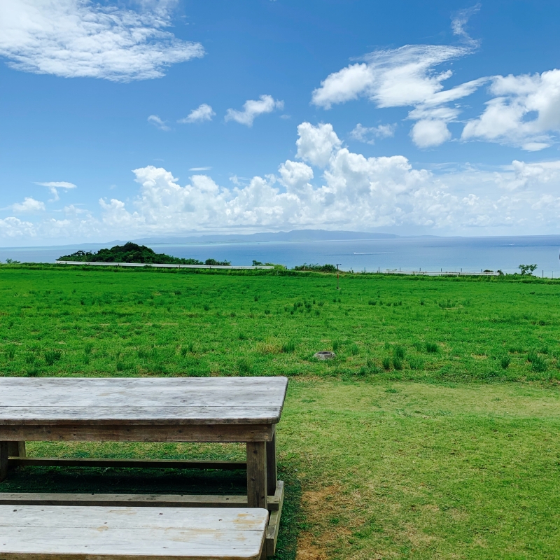 石垣島の繁華街から車で15分程度の距離にある、酪農家である伊盛(いもり)牧場直営のジェラート店。なんと言ってもその素晴らしいロケーションが魅力で、牧草地のような広場の先にはエメラルドグリーンの海の絶景が広がっており、開放感でいっぱいです。