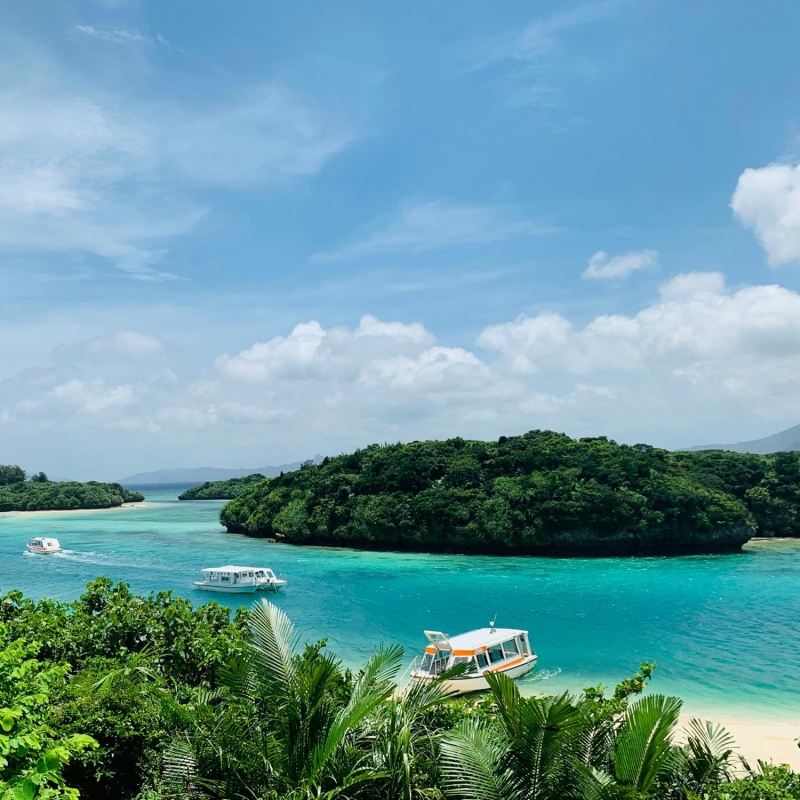 石垣島の北西部に位置する川平湾は、ドライブするならぜひ立ち寄りたい島随一の観光スポット。『ミシュラン・グリーンガイド・ジャポン』で三つ星を獲得した絶景スポットで、”川平ブルー”と呼ばれる海の青さは、ほかとは比べものにならないほどの美しさです。近くにある川平公園の展望台からは、まるでポストカードような美しすぎる景色を楽しめます。