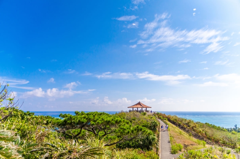 石垣島屈指のパノラマビュースポット!石垣島北東部の小高い丘にある屋根付きの展望台で、エメラルドグリーンの海を一望する絶景が楽しめます。駐車場から展望台までの遊歩道には、ソテツなど南国の植物もたくさん目にすることができ、道中もリゾート気分が味わえ楽しいですよ。