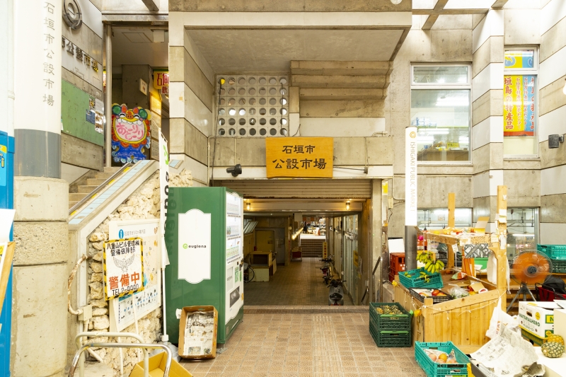 近海で採れた鮮魚、石垣牛などの精肉、八百屋や惣菜店などが並び、石垣島の食生活の一端が感じられる市場です。ユーグレナモールというアーケード商店街の中にある市場なので、冬の天候が悪い日でも過ごしやすいのが嬉しいポイント。3階建ての建物の半地下になっている部分が公設市場となっています。