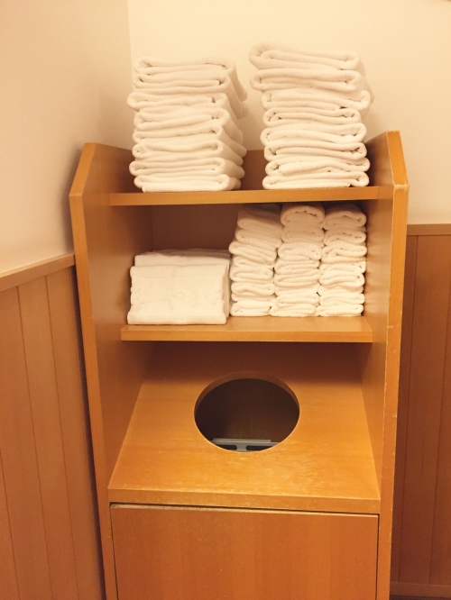 利用する時間になったら、フロントで鍵を貰い中へ入ります。脱衣所にはフェイスタオルやバスタオル、ドライヤー、化粧水等が置いてあるので、手ぶらで利用出来ます。洗い場も備わっているので、大浴場に入らなくても貸切風呂のみで入浴が完結します。