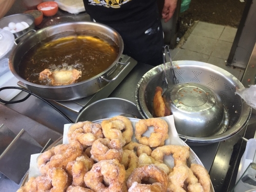店頭で調理を行っている人に直接注文します。目の前の油で一気に上げて調理していきます。