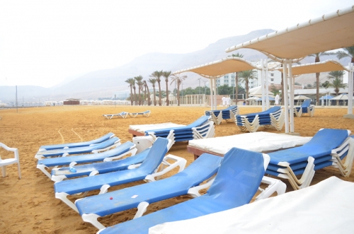 エンボケックの死海はパブリックビーチなので誰でも入れるのですが、「Crowne Plaza Dead Sea」の真正面のこのビーチはしっかり整備されています。
