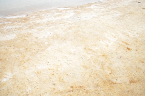 水辺に近づくと、砂が塩まみれになっていることに気がつきます。気温は暖かいのに雪が降ったかのような、不思議な感覚が味わえます。