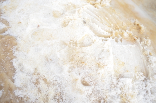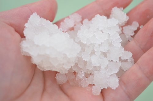 塩の塊を拾い上げると、手のひらでガシャガシャと崩れていきます。死海の水に触れた後は、手がちょっとぬるぬるしたような不思議な感触になります。
