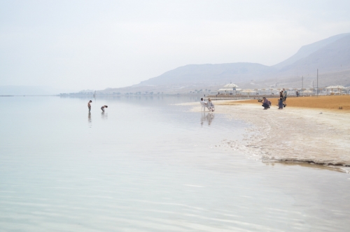 ちなみに死海はビーチからこれだけ離れていても、歩きながら写真を撮れるくらいの水深です。泳ぎが苦手な人も安心して入れますよ!