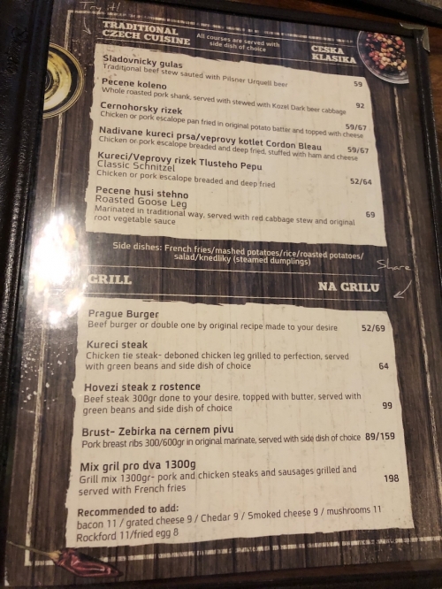 「Little Prague」の料理はチェコ料理だけに限らず、ドイツなどの中央ヨーロッパの料理が楽しめます。海外にあるアジア料理店に、キムチや春巻き、寿司が一緒にあるような感じでしょうか。
