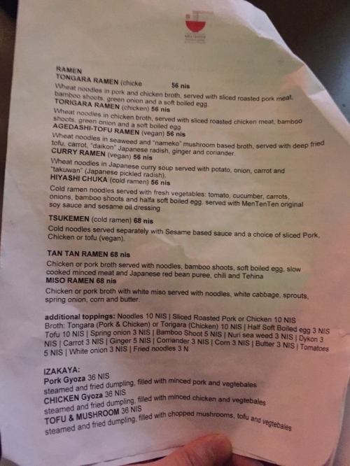 「MEN TENTEN」はイスラエルでおそらく最も知られている日本のラーメン屋だと思いますが、それは認めざるを得ないという印象でした。ラーメンに興味のある人は、来て損はない場所だと思います。