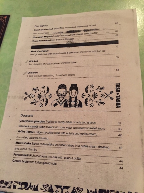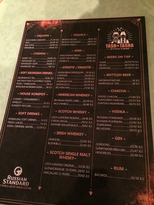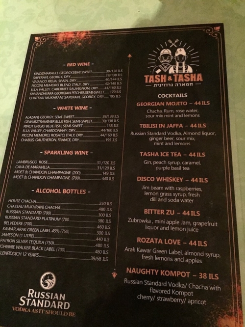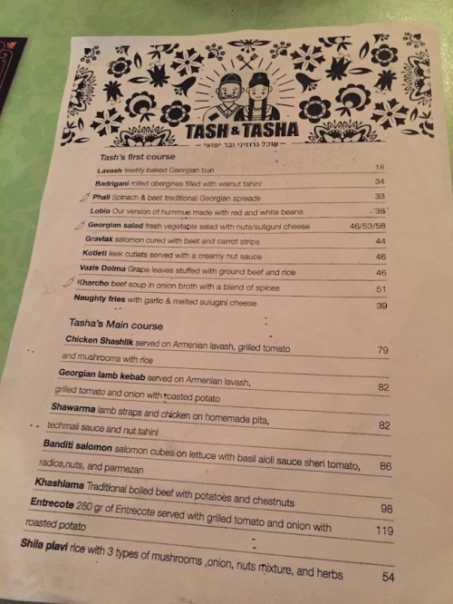 「Tash&Tasha」のメニューはヘブライ語と英語のものがあります。 内容は王道のグルジア料理がずらりと並びます。