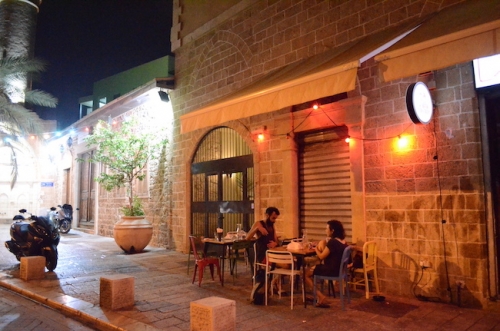 ヤッファはそもそも観光客や地元住民で賑わっているエリアですが、お店の前も活気があります。 テラス席で食事をとることも可能です。
