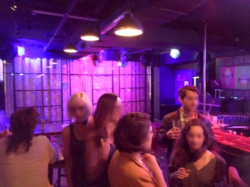 ドラァグクイーンショーのスタートを待つ人たちがお店の外で飲みながら時間をつぶしています。平日火曜日の夜にしては賑わっている印象です。