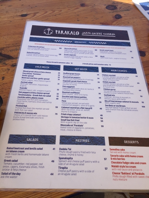 【イスラエル・テルアビブ】地中海沿いのギリシャ料理のレストラン「PARAKALO」