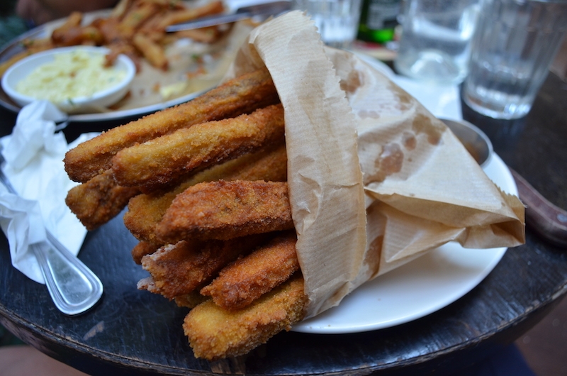 ズッキーニはなすと同じくらい人気です。焼き野菜としてもよく添えられています。フライドポテトのようなフォルムで提供されることが一般的です。「Fried Zucchini」「Zucchini Fries」と表記されます。ちなみにアメリカ英語で「Fries」はフライドポテトを意味します。