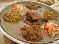 ![]() 世界初のユダヤ人の料理本として知られる「How to Cook in Palestine」 | ![]() 出典:tripnote.jp テルアビブのエチオピア料理屋で提供されるインジェラとワット | ![]() 写真:がぅちゃん |