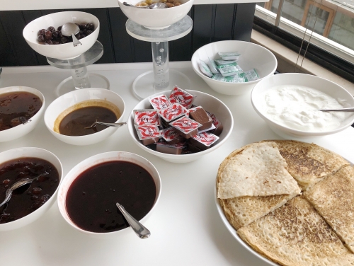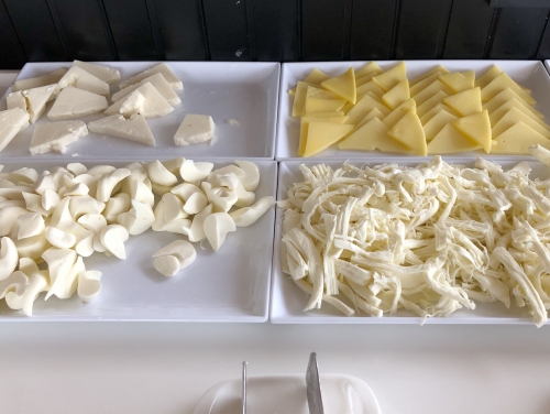 最上階は展望が素晴らしいレストランフロアになっており、毎朝バイキング形式で美味しい朝食を好きなだけいただくことができます。トルコの朝食には欠かせないチーズの種類も多いのが嬉しいですね!手作りのクレープには、チョコレートやフルーツジャムを塗って食べたり、卵や野菜と一緒に食べても美味しいですよ。