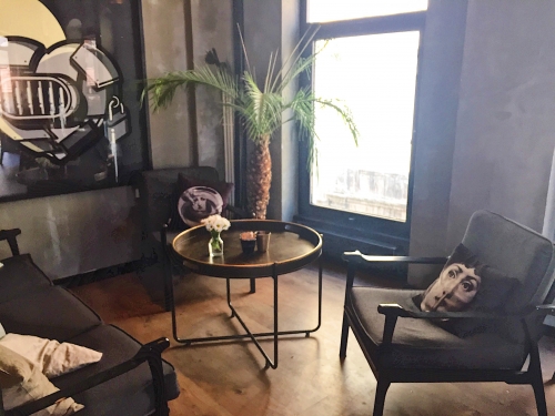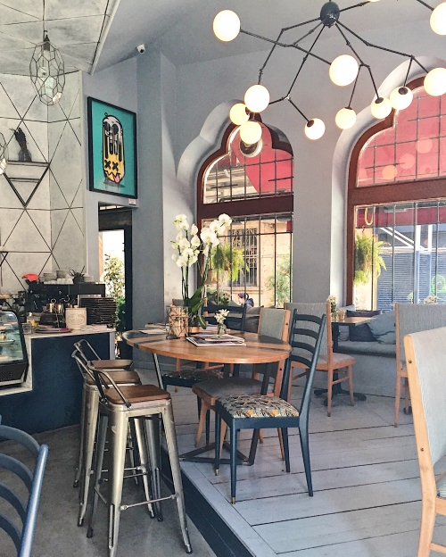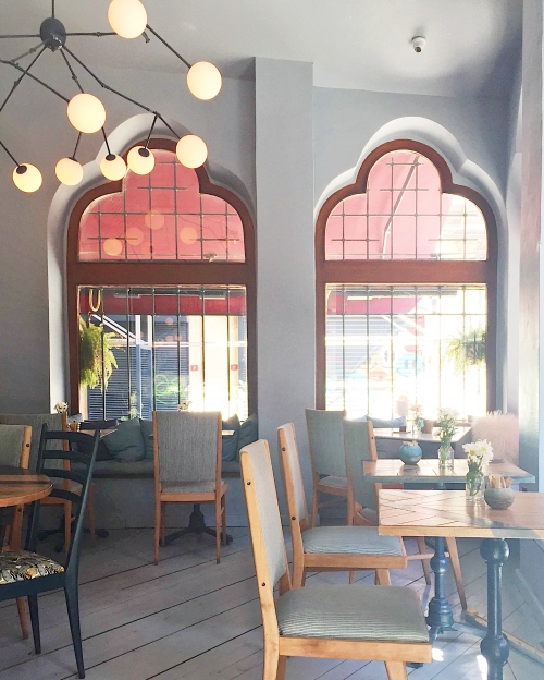 HAN Karaköyのまず注目すべきポイントは、その内装の可愛さです。落ち着くグレーでペイントされた壁に、外の光がたっぷり注ぎこむ大きな窓があります。この窓の鉄格子は取り壊すことが禁止されているので、窓の形や鉄格子は70~80年前に建てられたときのままの形だそうです。