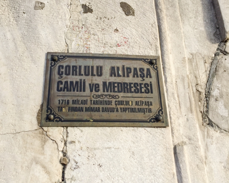 Çorlulu Alipaşa(チョルルル・アリパシャ)はイスタンブールのヨーロッパ側、旧市街にあります。敷地内はCami(ジャーミ)とMedrese(メドレセ)、つまりモスクとイスラム神学校で構成されています。いまから300年も前に建設された神学校の部分は、現在はお土産物屋さんやカフェスペースとして利用されています。