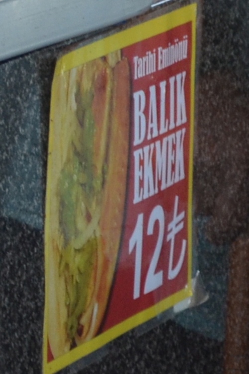 観光スポットであるガラタ橋やエミノニュ広場の近くにはサバサンドの屋台船「Derya Balık Ekmek」があり、非常に活気があります。「Balık Ekmek」とはトルコ語で「鯖/サバ」を意味し、ガラタ橋周辺ではよくこの文字を見かけます。