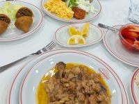写真:Zon イスタンブール新市街イスティクラル通り ハジュ・アブドゥッラー・ロカンタス コンポストという果物の甘煮も人気商品 |  写真:Zon イスタンブール新市街イスティクラル通り ハジュ・アブドゥッラー・ロカンタス 前菜の盛り合わせ、イチリ・キョフテ、羊肉の煮込み、バターライス、果物の甘煮 3,800リラ(約13,680円) ※二人前 | |