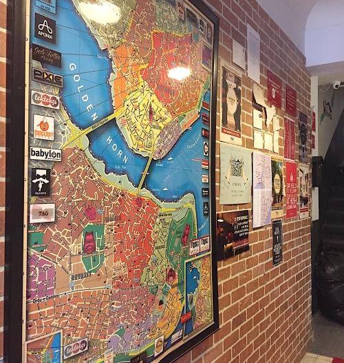 1つめにご紹介するのは、埠頭から徒歩8~10分のところにあるHush Hostel Loungeです。住宅街に溶け込む外装は、まるで自分が旅行者ではなくこの土地の住人になったかのような気分にさせてくれます。レセプション付近にはイスタンブールの大きな地図があり、宿泊客の大きな手助けになっています。