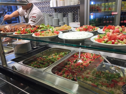 トルコ、イスタンブールにはロカンタという大衆食堂がたくさんあります。かしこまったレストランよりも、お手軽にトルコ料理を楽しむことができます!レジに行きつくまでにおいしそうな料理がたくさん並んでいるので、指差しなどで注文します(旅行者には便利で嬉しい)!料理を取りわけてもらい、レジでお会計をして、席まで自分で運んでいって料理をいただきます。
