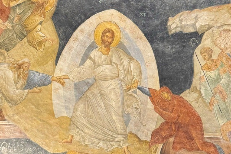 特に注目したいのが、パレクレシオンの東端に描かれた「アナスタシス(復活)」のフレスコ画です。これは、死後のキリストが冥界に下り、アダムとイヴを救い出す場面を描いたもので、力強い筆致と躍動感にあふれています。白い衣をまとったキリストが、地獄の門を踏み砕き、罪を克服する姿は、ビザンティン美術の傑作として広く知られています。