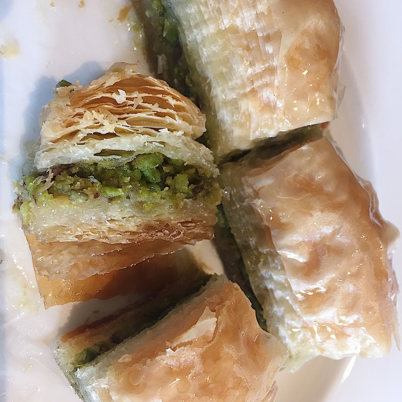見た目はそんなに大きくなく、「4つかぁ、もっと食べられそう!」と思うかもしれませんが、甘さが尋常ではないBaklavaは4つで大満足できてしまうハイカロリーなスイーツなのです。