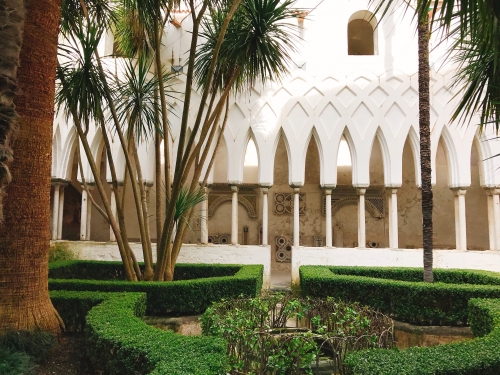 中庭には熱帯性の植物が植えられ、エキゾチックな雰囲気が漂います。アラブ独特の工芸的なアーチを交差させたアラブ・ノルマン様式は必見です。スペインのアルハンブラ宮殿の雰囲気を思い出します。