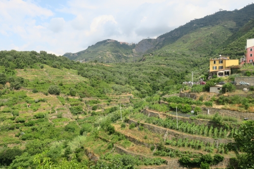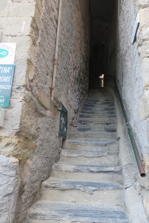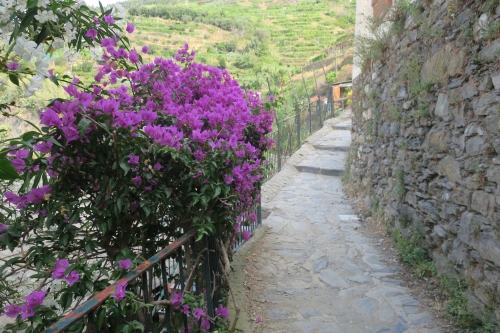 進んで良いのか躊躇する階段ですが、その階段を登ると民家エリアに出るので、左に曲がり更に階段を登るとハイキングロードへ。少し歩くと左眼下にヴェルナッツァが一望できます。