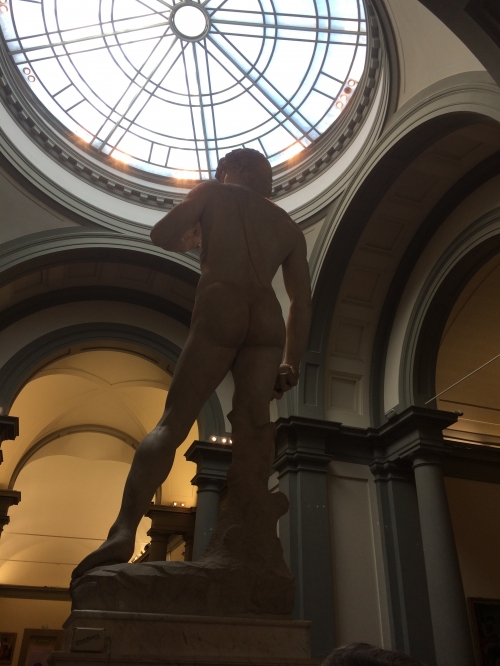 ...でも、最高傑作と言われる割には、なんだか頭と手が大きすぎて全体で見るとちょっとアンバランスな気がする…と思われた方、そうなんです!実は、元々ドゥオモのクーポラのところに設置される予定でミケランジェロは仕事を依頼されたのだそう、そのため、ミケランジェロは人々が下から見上げた時にちょうどバランス良く見えるように計算して作ったのではないか、と言われています。ミケランジェロが想定していた見方でぜひ見てみたいものですね。