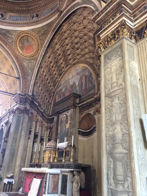 この教会、街中にありドゥオモから徒歩5分程度、ファッション店が立ち並ぶトリノ通りに面しています。ドゥオモ見学の後や、お買い物の途中などにちょっとのぞいて見てはいかがでしょうか。
