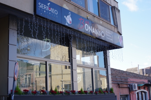 カターニアからエトナ山までは片道バスで2時間の距離ですが、途中ニコロージ(Nicolosi)という町で20分ほどの休憩タイムを挟みます。