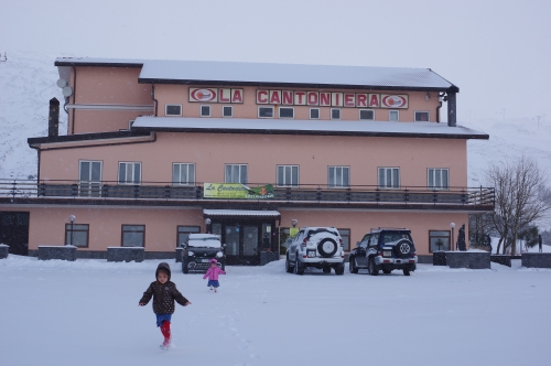 筆者が訪れたのは12月末ということもあり、ニコロージ(Nicolosi)を過ぎてエトナ山へ近づくにつれて、銀世界が広がってきました!