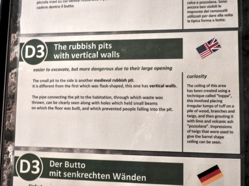この看板の約20メートル先が カーヴァの井戸の入り口です。この井戸は紀元前5〜6世紀のエトルリア時代につくられた洞窟内の井戸を基にしてつくられました。紀元前5〜6世紀といえば、日本の縄文時代ごろに当たります。