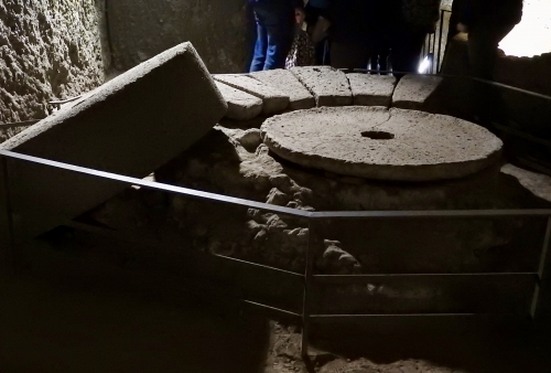 洞窟に入って初めに現れるのが、中世の頃に使われたオリーブの搾油所です。