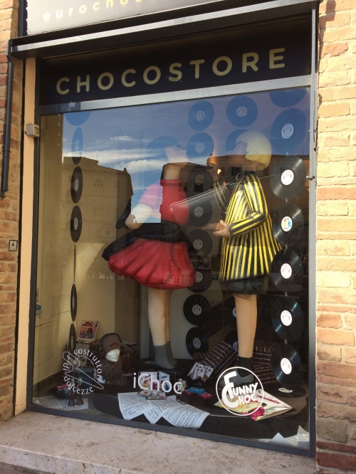 街中がチョコ一色になっており、洋服屋さんのショーウィンドウもチョコ仕様になっています。隠れチョコを探すのも楽しいかもしれません。